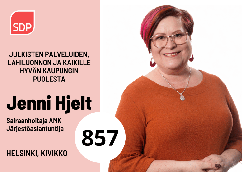 Pidän tärkeänä julkisia palveluja. Mm. toimivat sote-palvelut, laadukas varhaiskasvatus ja hyvät koulut ovat avainasemassa, jotta kaupunkilaiset voivat elää hyvää elämää Helsingissä.